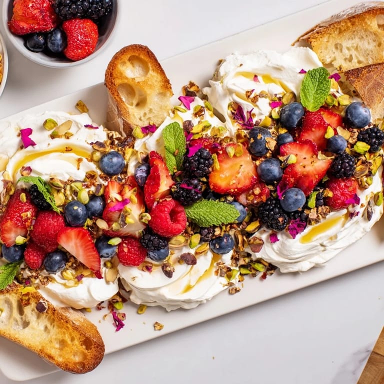 - Toppings: 150 g (1 cup) mixed fresh berries (strawberries blueberries raspberries blackberries) 2 tbsp chopped toasted pistachios or almonds 1 tbsp dried edible rose petals (optional) 2 tbsp mini chocolate chips or shavings 2 tbsp granola (optional) 1 tbsp fresh mint leaves torn