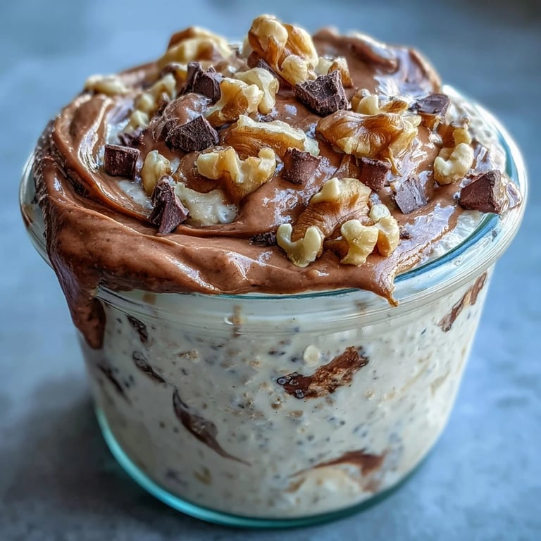 Save There's something wonderfully low-pressure about overnight oats—no stovetop, no timing anxiety, just a jar and a refrigerator doing the work while you sleep. I stumbled into making these Chunky Monkey versions on a Tuesday morning when I was tired of cereal and had exactly three things in my pantry that shouldn't have worked together but did. The banana-chocolate-peanut butter combination hit me like comfort food that actually kept me full until lunch, which felt like discovering a cheat code for breakfast.