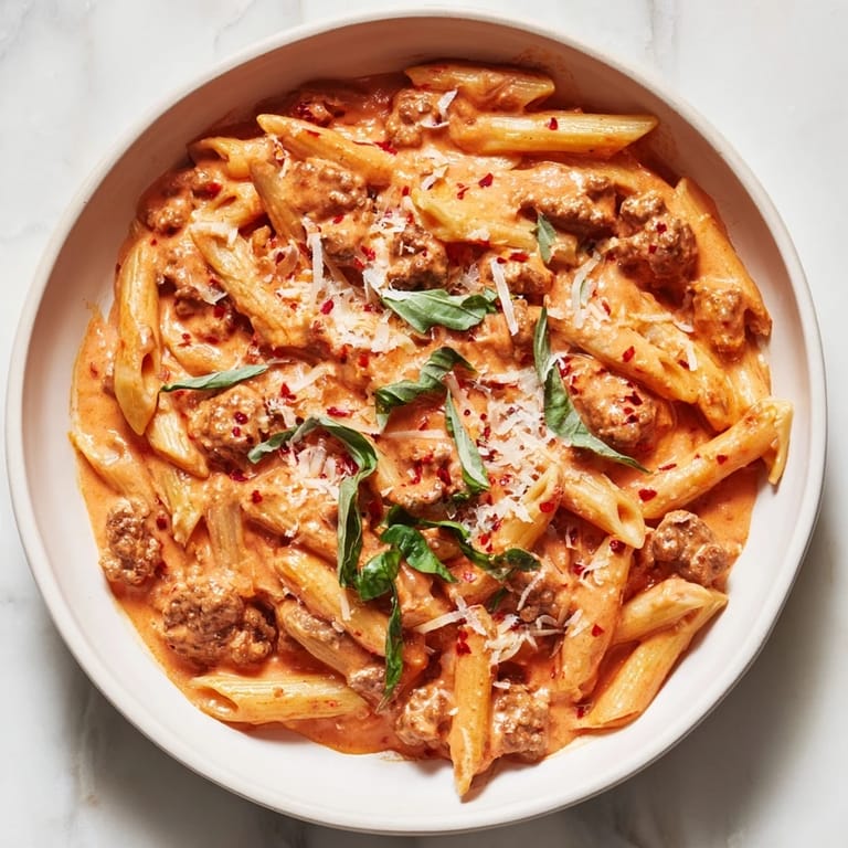 Save A rich and comforting pasta dish featuring savory sausage, a creamy tomato sauce, and al dente penne—perfect for busy weeknights.
