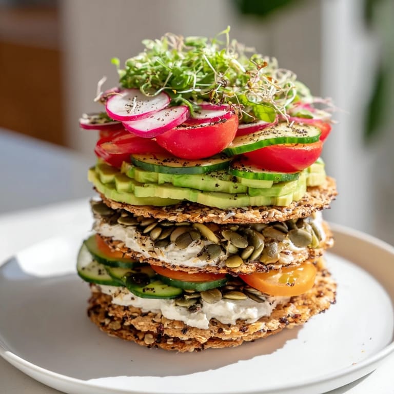I remember plating the first tower on a white ceramic dish, sprinkling those toasted pumpkin seeds on top, and seeing the afternoon light catch the microgreens just right. My sister took a photo before we even served it, and honestly, that tower became the hero of that entire dinner. People kept asking for the recipe, not believing that something so sophisticated could come together so quickly—and without a single grain of gluten.