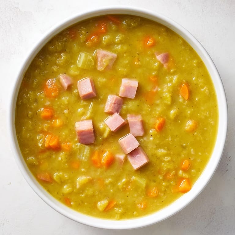 Save A comforting, savory soup made with split peas, leftover ham, and a ham bone for rich, smoky flavor—perfect for chilly days and making the most of leftovers.