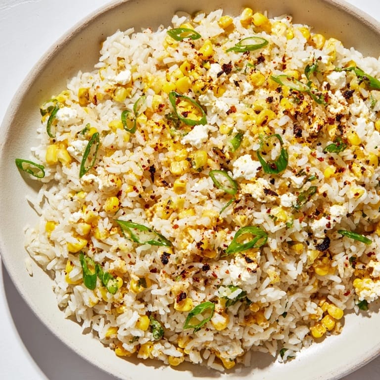 The order matters here because you're working with a tight timeline. Starting the rice first means it finishes right when you're ready to combine, which is crucial—the heat helps the sauce cling to each grain. If your rice finishes before the corn is charred, just cover it and let it sit for a moment; it won't dry out if you're quick about it. Room temperature is actually its sweet spot for serving, which means you can make this ahead if you're prepping for a party.