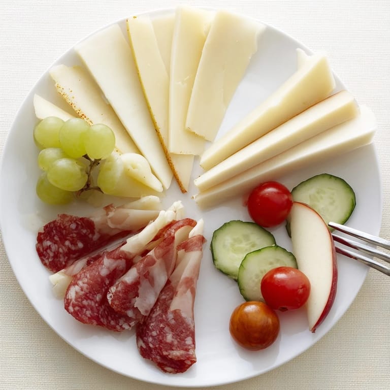 - Cured Meats: 80 g Saucisson sec sliced, 80 g Jambon cru (dry-cured ham) thinly sliced