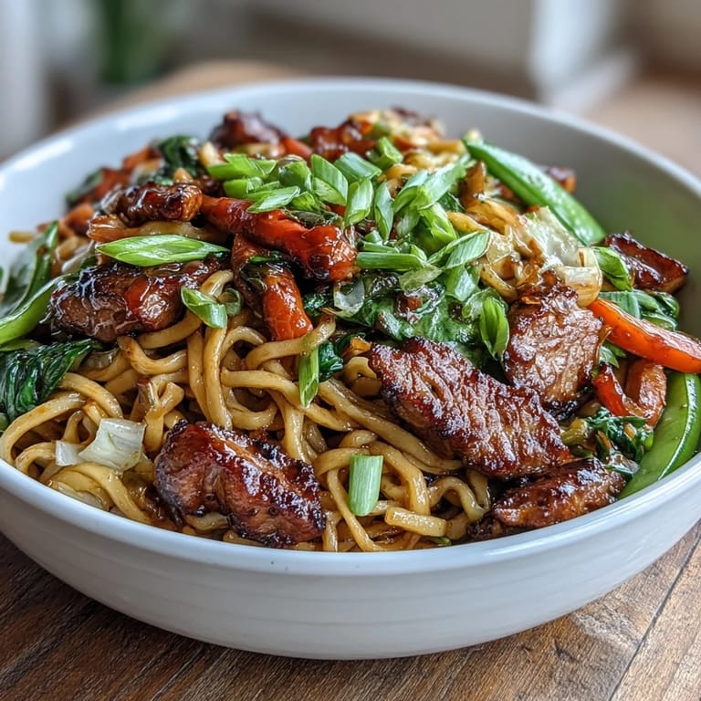 Save There's something about the sound of a hot wok that instantly transforms my kitchen into a focused, almost meditative space. One Thursday evening, running late from work, I threw together this pork noodle stir-fry almost by accident—grabbing whatever vegetables looked fresh and a cut of pork that needed using. What came out was so vibrant and satisfying that I realized dinner didn't need to be complicated to be memorable. Now it's become my go-to when I want something that feels restaurant-quality but doesn't demand hours of planning.