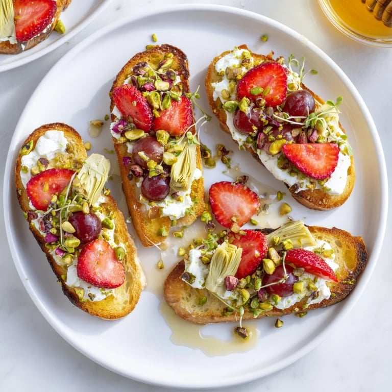 - Place small bowls of goat cheese and ricotta directly on the board, or if you're going for a more modern look, dollop them straight onto the board in a few strategic spots. Drizzle the honey over the goat cheese while it's still slightly warm so it creates those beautiful amber streams, then scatter the pistachios over top while the honey is still sticky—they'll adhere beautifully.