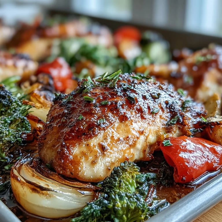 Save There's something almost magical about sliding a sheet pan into the oven and knowing that in less than half an hour, you'll have a complete meal waiting for you. I discovered this particular combination on a Tuesday night when I had exactly four chicken breasts thawing and a fridge full of vegetables that needed rescuing before they wilted away. No complicated sauces, no endless cleanup—just honest food that tastes like you actually tried.