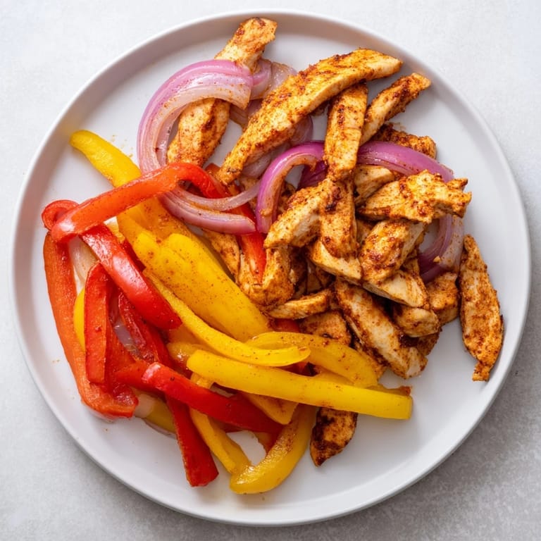 A vibrant, easy weeknight meal featuring juicy chicken strips, colorful bell peppers, and onions, all roasted together on one pan for minimal cleanup and maximum flavor.