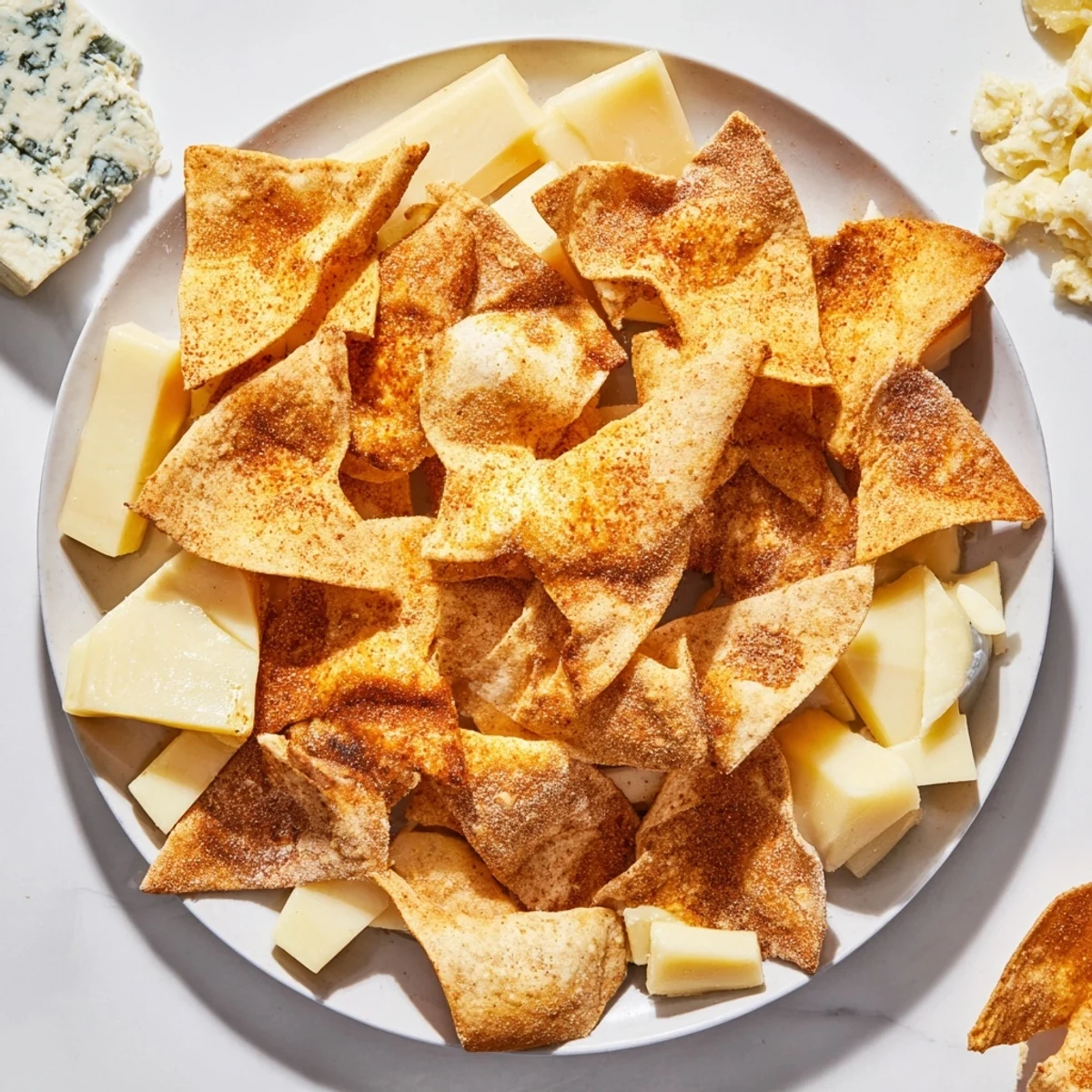 Brush the chips lightly with olive oil and bake them until golden brown, about 8–10 minutes at 180°C (350°F). Let them cool completely for maximum crunch.