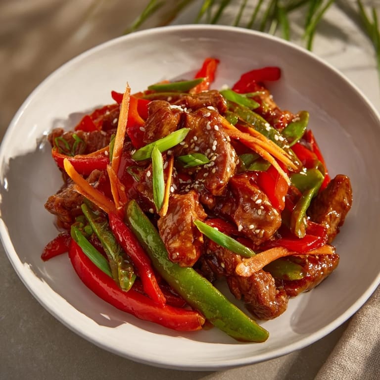 Save My neighbor knocked on my door one Tuesday evening holding a bottle of mirin and asking if I had a quick dinner idea. I pulled out some pork tenderloin, raided my crisper drawer, and improvised this stir-fry while we talked about her new job. The sauce came together so fast and glossy that we both stood there watching it coat the vegetables like magic. She went home with the recipe scribbled on a grocery receipt, and now she makes it every week. Sometimes the best recipes happen when you're not even trying.